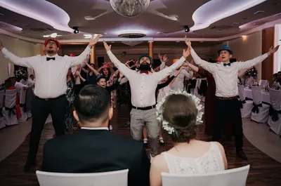 “Duet Krawat i Muszka zbiera wyłącznie najwyższe oceny 5/5 od wszystkich klientów. Goście chwalą profesjonalizm, idealnie dopasowany repertuar do każdego wieku i oryginalne zabawy integrujące wszystkich. Imprezy trwają do białego rana z pełnym parkietem i rewelacyjną atmosferą.”